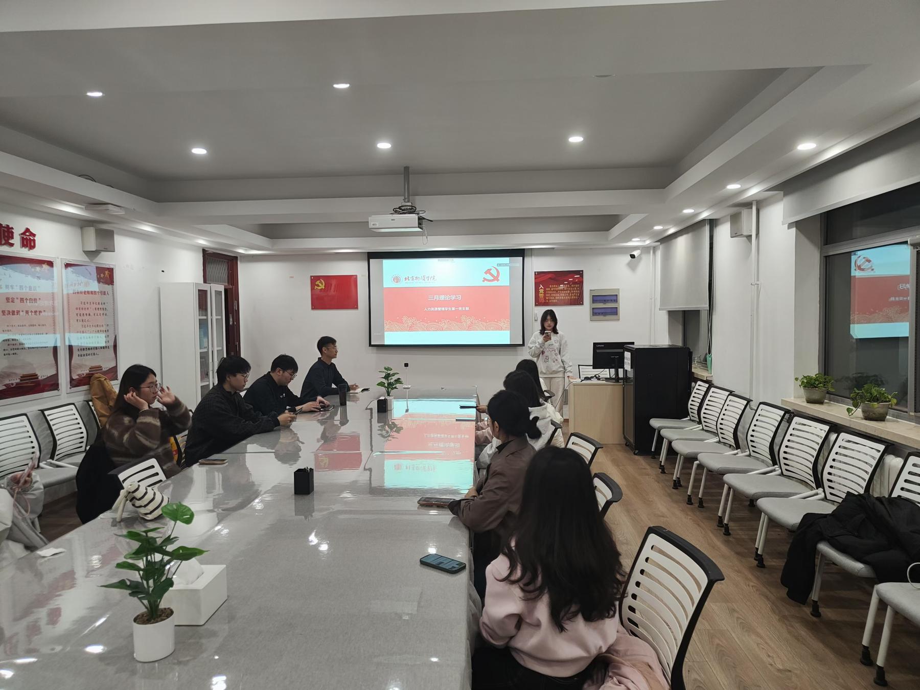 2025年03月10日19:00,党支部组织全体党员在科研楼410召开理论学习会。此次会议由人力资源管理专业学生第一党支部书记董海辰同志主持。本次理论学习会主要围绕学习习近平在中共中央政治局第十九次集体学习强调的坚定不移贯彻总体国家安全观和把平安中国建设推向更高水平的发言内容展开。