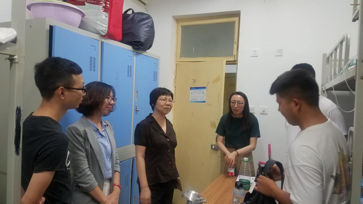 党委副书记陈霄英一行前往宿舍进行慰问,了解新生的思想动态,并对新生表示温暖关怀。