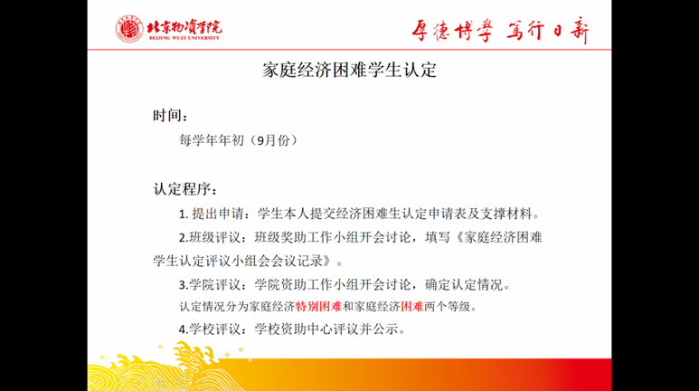 首先陈昕从国家资助的目的和意义入手,介绍了学校的各项资助措施,教育同学们要感恩国家、感恩父母、感恩老师,结合往年品学兼优学生的励志事迹,引导家庭经济困难学生正确认识和对待贫困,做到心怀感恩、励志自强,以感恩之心回报国家、社会和学校,并将感恩之心化为回报之行,奋发有为,从而成就自己的青春梦想。