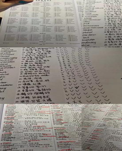 许多学生认真完成了本次四六级学习打卡活动,同学们积极主动地制定每日单词背诵计划表,并认真严格完成计划任务;同时通过各类背单词软件利用零碎时间提高自己的单词储备量;同学们自发的组成四六级备考小组,相互帮助,共同提高英语成绩,浓浓的学习氛围下是同学们友谊的升华。