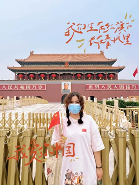 许多学生在天安门广场等代表性地点与国旗合影、拍摄国庆仍在岗位上的劳动者、祖国的美好河山或反映建国以来家乡的日新月异的文化印记。以摄影的形式抒发对于国庆节的情感和记忆,通过镜头下的瞬间尽显生活点滴。