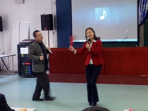期间,还穿插着王士锋老师主持下的“击鼓传花”游戏和范少君老师主持的“握握手”游戏,以及令老师们兴奋的抽奖环节。