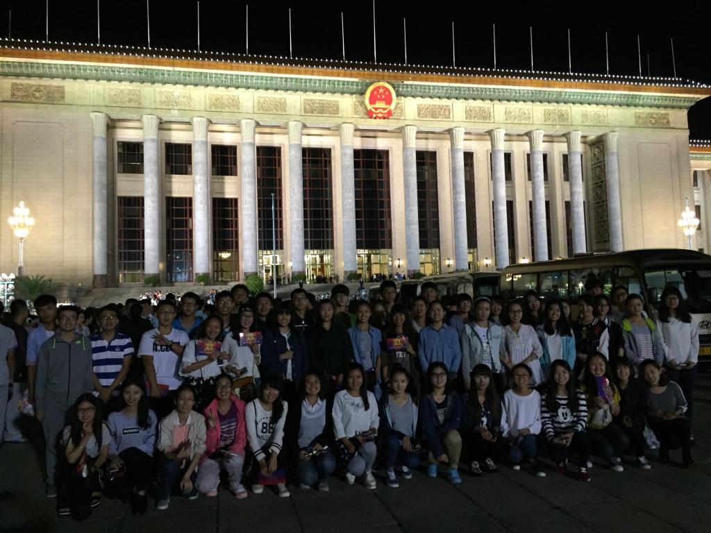 2015级新生在辅导员凌林老师的带领下来到北京人民大会堂大礼堂观看由中国科协联合教育部、共青团中央、中国科学院、中国工程院主办的“共和国的脊梁”主题晚会,观看演出的观众包括近百名院士和首都1500余名科技工作者,以及1500余名在京高校师生。