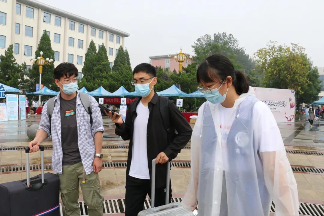新生保驾护航,在雨中提供最温暖志愿帮扶,让寂静许久的校园,再次响起了同学们的欢声笑语。