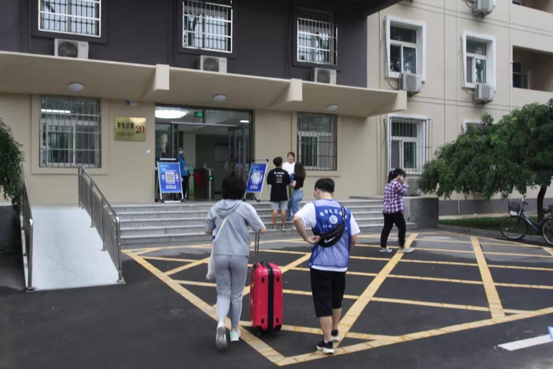 为加快新生入校进度,减少人员聚集,学校采用新生先入校报到,行李由学校专车送往行李寄存处,等新生报到完成后,在志愿者的引导下,领取行李,返回宿舍。