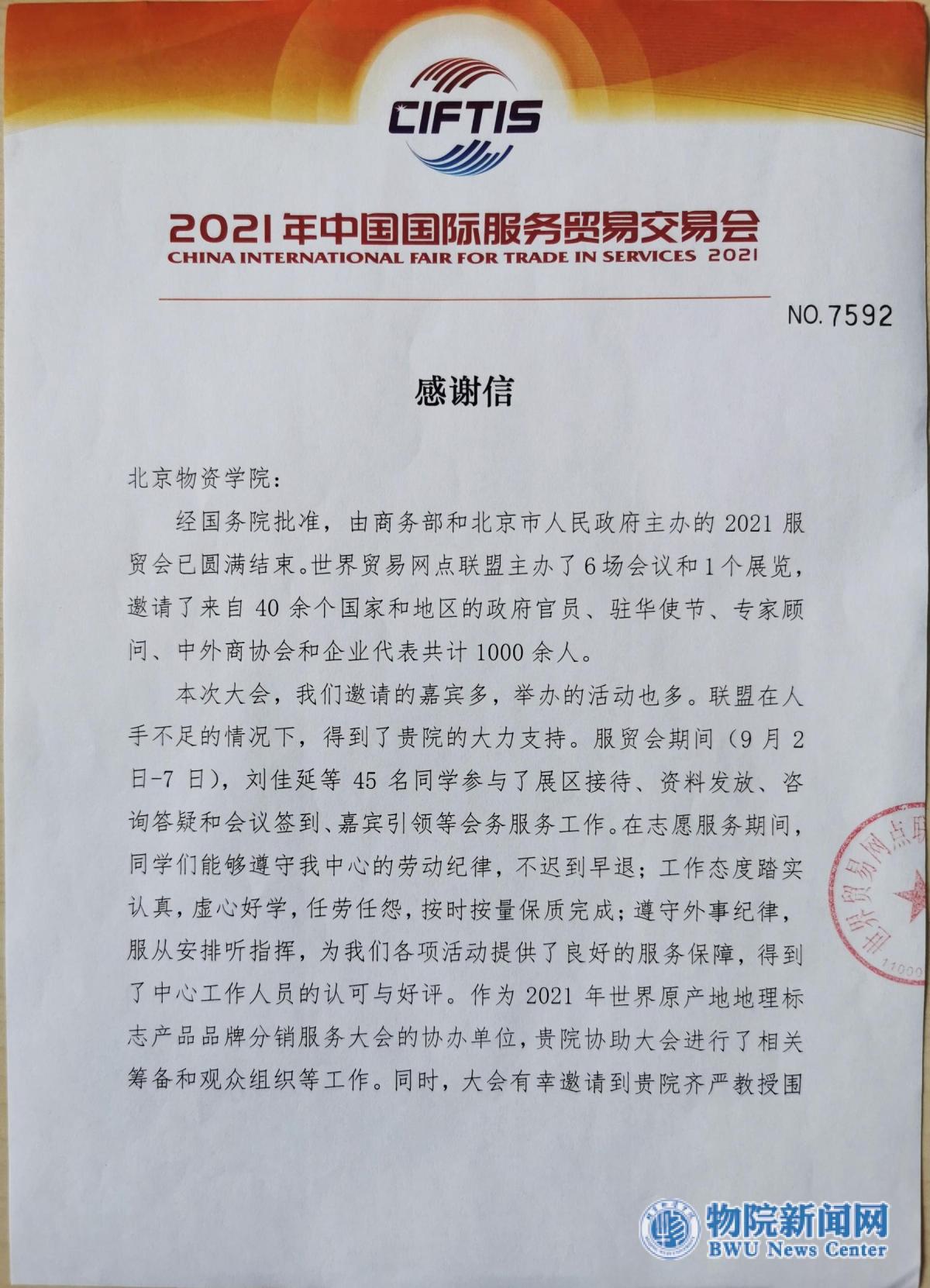 45名志愿者在服贸会中提供了良好服务保障,得到了中心工作人员的认可和好评。信中感谢了成人电视