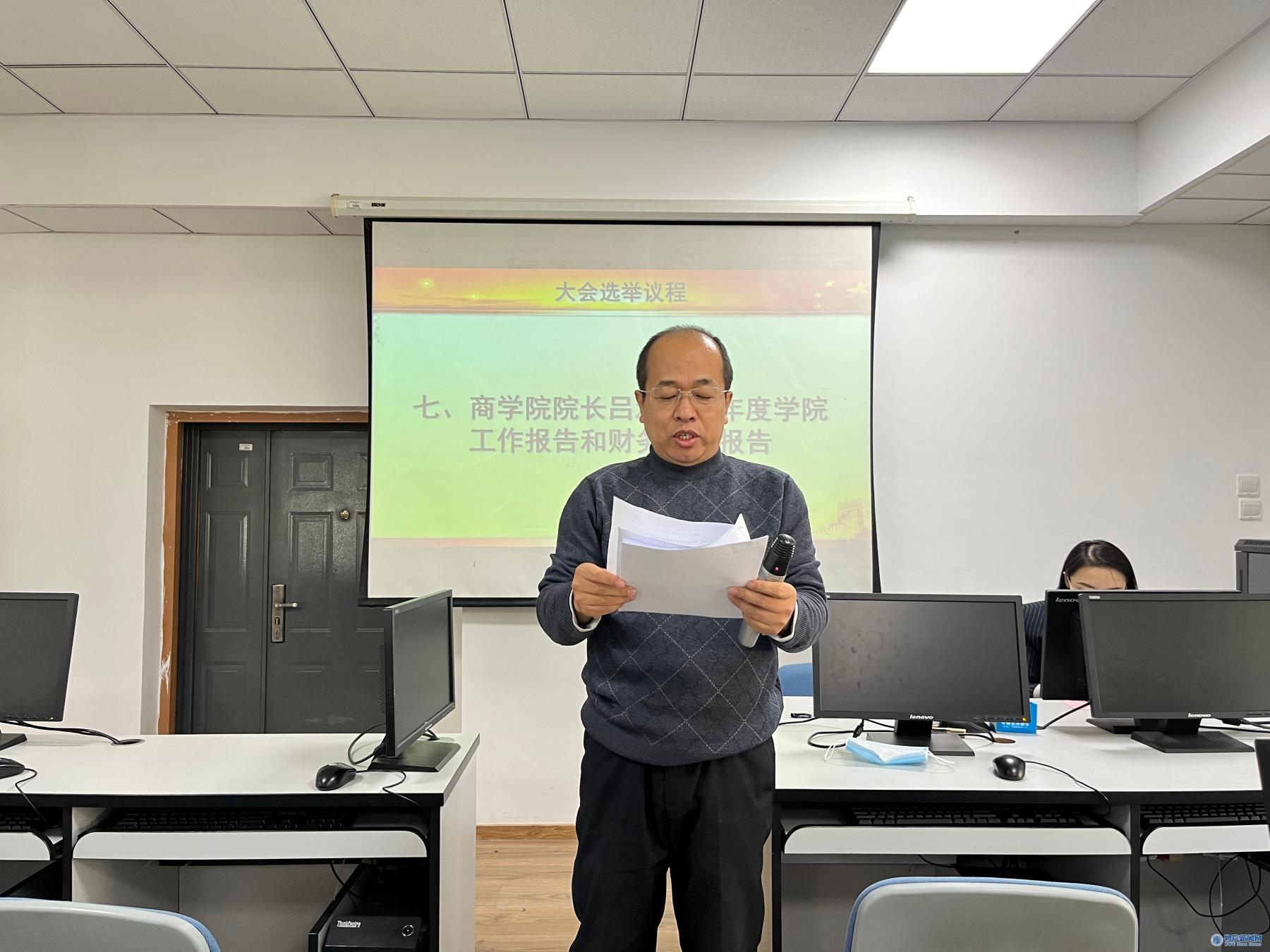 院长吕波做本年度学院工作报告和财务工作报告。吕波指出,2021年,我院面对疫情常态化、专业优化、学科布局、招生就业与人才培养等新形势、新任务,面对机遇与挑战,认真贯彻落实上级及学校会议精神,充分利用地处北京市城市副中心的地利优势,在学校的领导支持、大力帮助下,在全体教师员工的共同担当、共同努力下,学院按照学校重点工作和学院年度工作计划,学院教学、科研、行政管理等各项工作达到预定目标,取得了显著成效。