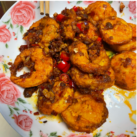 自家年夜饭的特殊品,这是我和弟弟妹妹最喜欢吃的,甜甜的味道和醇香的芝士的组合是一种很奇妙的味道。