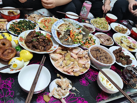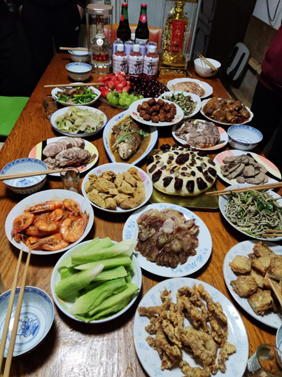 今年是家庭团聚在一起的一天,大家在除夕夜晚分享祝福、享受快乐、共享美食,圆满而又快乐。今夜有我们家庭承包年夜饭的准备工作,鸡鸭鱼肉欢聚一堂,伴着春晚,说着笑着,喝着乐着,开启年夜饭。年夜饭展示了不为人知的精彩厨艺。所做的道道佳肴都饱含着美好寓意,祈愿着新一年的幸福美满。除夕辞旧日,万家团圆时。虽然大江南北口味各异,但年夜饭里却同样拥有着“家”的味道,吃的不仅仅是美食,更是对生活的祝愿,对未来的希冀。