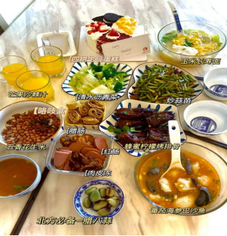图片上显示的是腊月二十三,也就是我们北方人的小年,但是每年的小年夜这天对于我们来说还有另一个特殊的含义——也是我妈妈的生日。由于我妈妈是过阴历生日,所以每年的小年夜这天不仅是提前进入年味儿的日子,更是我们全家一起为妈妈庆生的日子。像图片上展示的一样,映入眼帘的就有许多彰显北方汉族特色的美食——腊八蒜,从腊八那天就开始为春节提前泡起了大绿罐,与其说是传统,不如说是习惯,但是我仍旧品味不来;腊肠红肠肉皮冻更是春节档的常客,没了桌子上的这一抹红,总会有些不太适应;咯吱盒是我奶奶亲手做的,与外面贩卖的味道差别很大,要问是什么差别,只能说更多了一分家的温暖和对亲情牵挂的回味;咱就说看到炸五香花生米还是有一种想脱鞋上炕再配一小杯酒的冲动,小时候在奶奶家过年,是火烧的土炕,是热乎的饭菜,是家人的欢声笑语,现在更是对往昔的怀念。