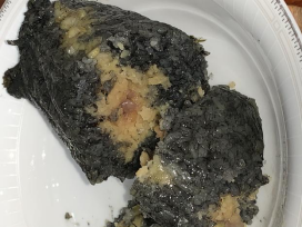 我的家乡是广西,我的民族是壮族。粽子是我们这里过年的必吃食物,亲朋好友之间会在新年互送礼物,而这个礼物百分之八十就会是粽子。包粽子这个活动一般会在春节前进行,有一家人聚在一起包的,也有自己准备好材料让手艺好的熟人包的。但无论是哪种,每次到了这些日子都会让我嗅到新年的气息。而春节吃粽子一方面是由来于制作粽子的原材料是我们这边地区所盛产的,而另一方面春节吃粽子也有着预示来年富裕丰盛的好寓意。