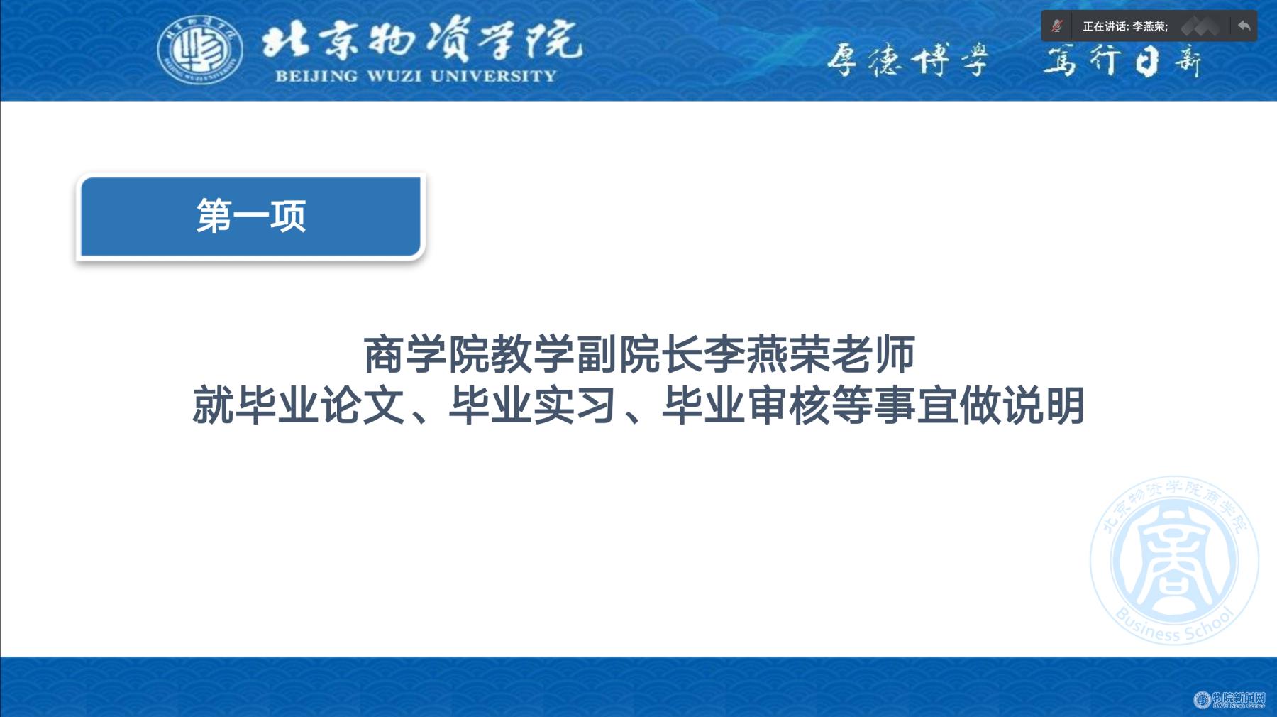 最后,党委副书记陈霄英首先代表学院党委向2022届毕业生送上“云”端问候,并就当前学校疫情防控要求和同学们关心关注的问题做具体说明。陈老师从“疫情防控、人人有责”的角度,指出当前疫情防控的严峻态势,叮嘱同学们实习实践期间注意防护,确保自身安全,并尽快接种疫苗;从“展望未来、时不我待”的角度强调目前距离毕业只剩下两个月的时间,希望同学们能够珍惜应届生身份,争取在毕业前将工作落实,并承诺学院将一如既往的为各位毕业生的毕业、就业等重要事宜保驾护航,全方位给予毕业生就业指导,多角度做好就业促进保障。
